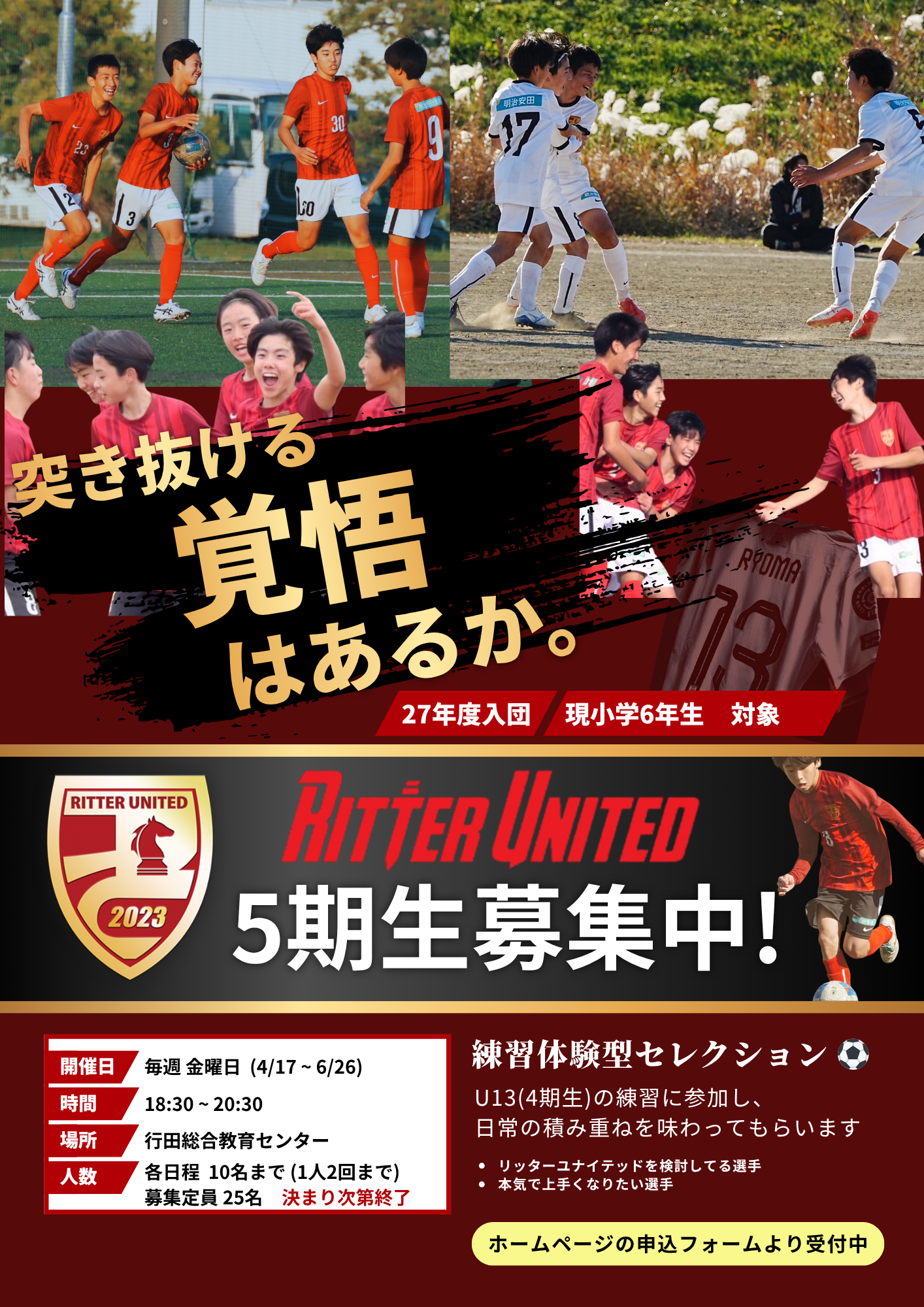 選手の想いや夢を膨らませ、実現に向けて共に考えもがき、サッカーを通じて人として育むことで、サッカーのフィールドだけではなく、社会のフィールドでも必要とされるような騎士(Ritter)になってほしいと思います。